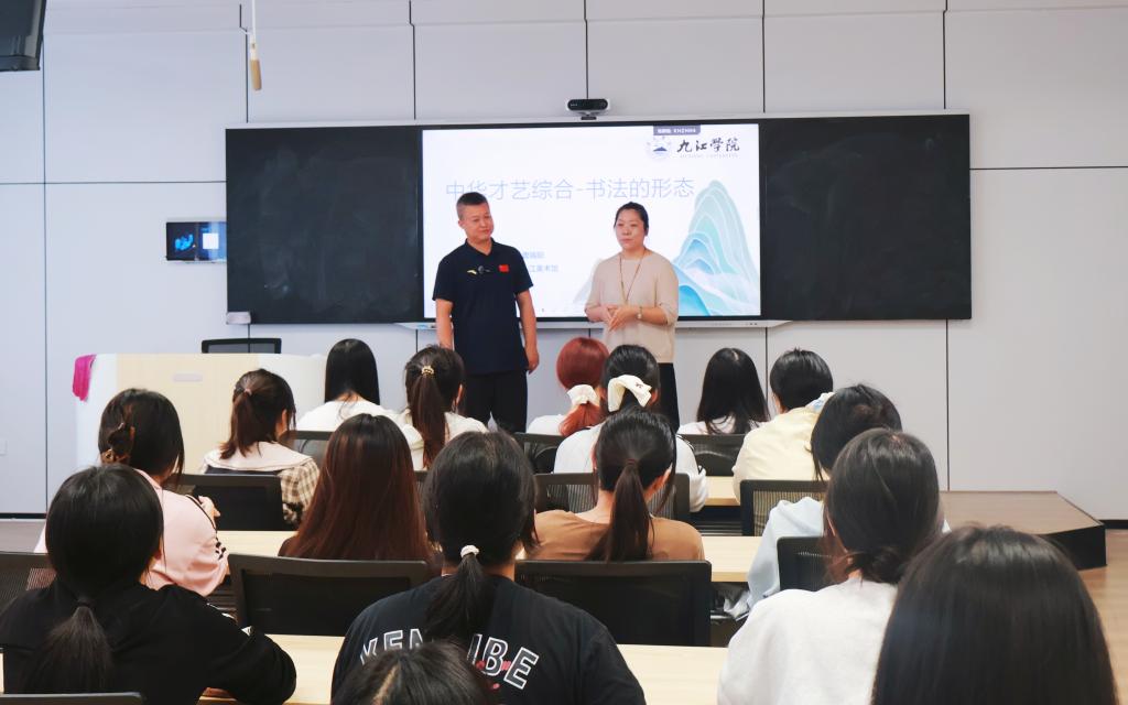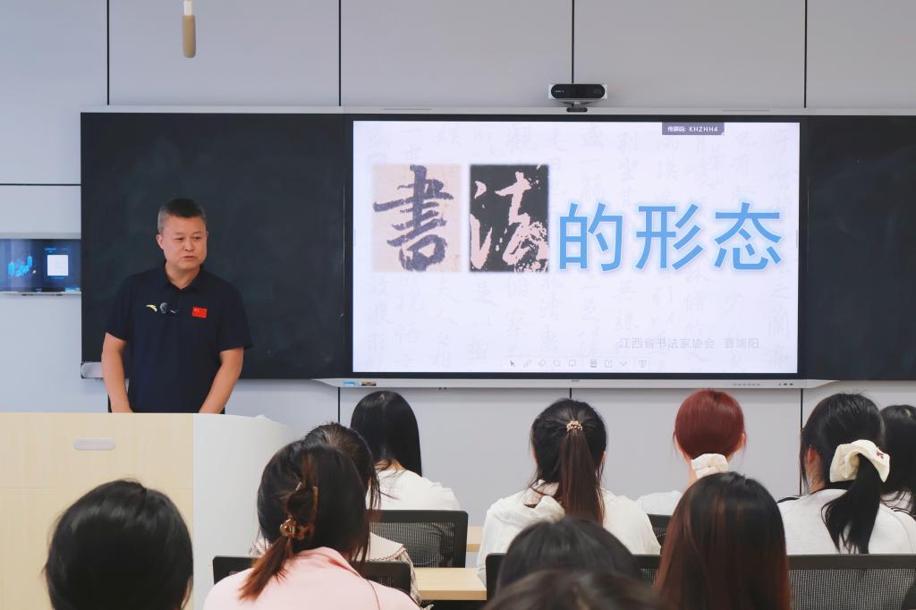 10月15日,汉语国际教育 《中华才艺综合》课程,特邀九江美术馆书法家、江西省书法家协会理事会副主席曹端阳老师,为汉语国际教育专业学生带来一场题为“书法的形态”的专题课堂。曹端阳老师从文字形态,法书形态,文化形态三个维度分析书法的艺术内涵,并结合历史文献与名家作品,为师生带来一场兼具专业深度与文化温度的书法文化盛宴。
