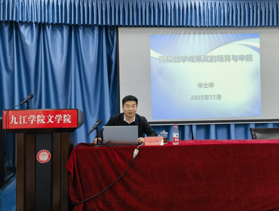 为提升教师教育教学研究能力,助力教学成果转化,11月5日,文学院特邀创新创业学院院长宋士华教授做客“弘文讲堂”,作“高校教学成果奖培育与申报”专题分享。文学院副院长程亚恒主持报告会,全院教职工参会。