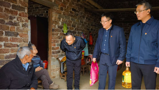 抵达双新村后,两支部党员教师迅速分组,深入结对帮扶的贫困户家中开展走访慰问。党员们与村民促膝而坐、亲切交谈,详细询问其农业生产、家庭收支、子女就学、医疗保障等实际情况,耐心倾听村民在生产生活中遇到的难题与诉求,逐一记录并与村党支部共同探讨解决方案,用脚步丈量民情,用真心倾听民意。同时,党员教师们为贫困户送去了大米、食用油等生活物资,以贴心关怀传递党组织的温暖,让村民们切实感受到来自高校的深情厚谊。