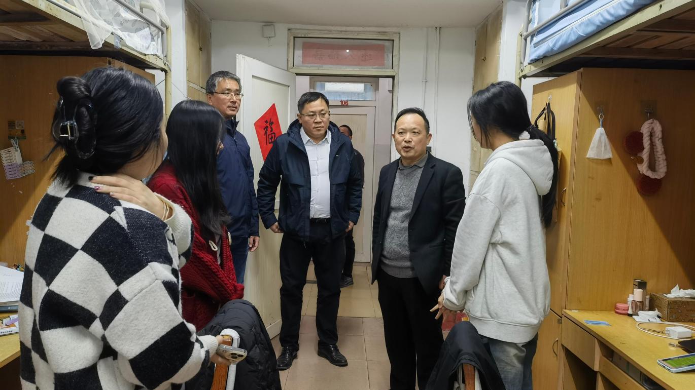 为彻底排查学生宿舍区的安全风险,营造一个安全、整洁、文明的学习生活环境,2025年11月18日,文学院院长李勤合、党委副书记杨思迪带领全体辅导员深入全院各学生宿舍,开展宿舍安全大排查。