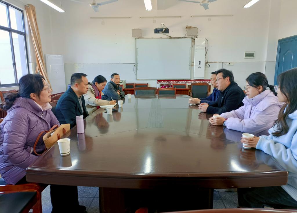 在湖口县城山学校,文学院考察团队受到了曹明君校长和王剑臣书记的热情接待。曹校长详细介绍了学校的基本情况,包括师资力量、教学设施及近年来的教育成果,并对当前在该校顶岗支教的两位实习生的表现给予高度评价,称赞他们工作态度认真负责,教学能力提升显著,已逐渐融入学校的教学环境。