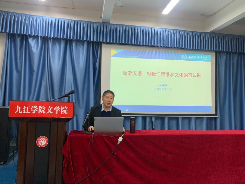 11月20日,上海外国语大学吴春相教授受邀莅临文学院,在文友楼204作题为《探索汉语,对我们思维与文化的再认识》的学术报告。报告由文学院副院长程亚恒主持,学院师生代表到场聆听,共同探寻汉语背后的思维密码与文化深意。