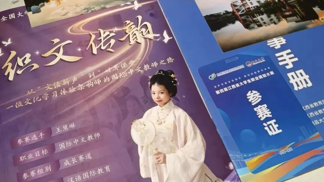 13分钟的比赛环节,7分钟职业规划陈述、5分钟评委提问,全面考验着选手的综合能力。王慧琳凭借丰富的实干履历从容应对:累计独立授课80余小时,教学覆盖15国生源;斩获国家级教学竞赛一、二等奖;参与非遗才艺库、节气课程等文化项目共创。她将实践经历与职业规划深度融合,用逻辑清晰的表达、从容自信的姿态,完美呈现了自己的职业理想与发展路径。这份省级银奖,是王慧琳个人努力的成果,更是文学院深耕专业教育、助力学生成长的生动体现。她的逐梦之路,充分展现了文学院学子勤学善思、勇于拼搏的精神风貌,也为全院同学树立了榜样,激励大家立足专业、踏实进取,在青春赛道上奋勇争先以语言为媒、以文化为翼,绽放青年学子的时代光彩。
