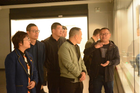 调研组一行在九江市副馆长张剑敏和藏品部主任赵建鹏的陪同下参观考察了博物馆基本陈列展——九派云横后,开展了座谈交流。博物馆馆长陈谦详细介绍了博物馆落实习近平总书记关于坚持正确政治方向,坚定文化自信,深化学术研究,创新展览展示,推动文物活化利用的精神开展的系列工作。博物馆以现有馆藏为基础,依托现代多媒体技术,尤其是新兴科技技术讲好九江故事,推动九江文化走出本市、走出本省,拥有更加广泛的受众,打造优秀的文博品牌。目前,博物馆已构建“九派博观”“九派博悦”“九派博思”“九派博雅”等业务板块,以更为多元立体化的方式合理利用资源,塑造文化品牌。博物馆希望与九江学院文学院加强合作,依托高校的专业优势与人才科研力量,实现本地区优秀传统文化的深入研究与高效传播。